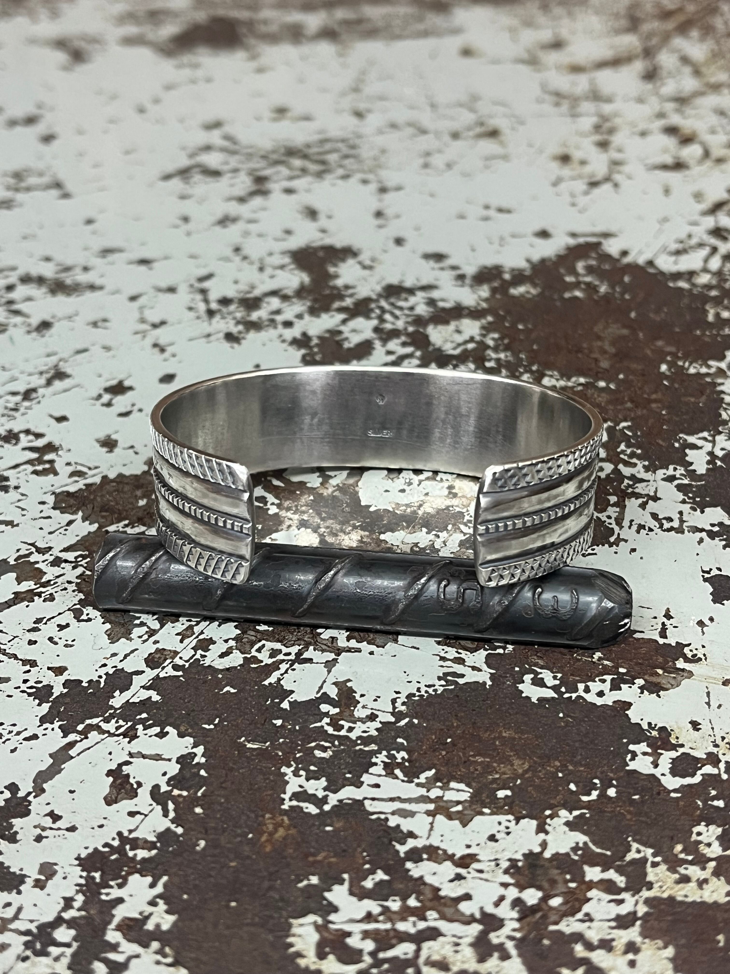 インゴットから製作する事で、締まったシルバーが程よい重量感があります。また機械を使わずに手磨きする事で柔らかい光沢を纏い、服装を選ばない1本です。